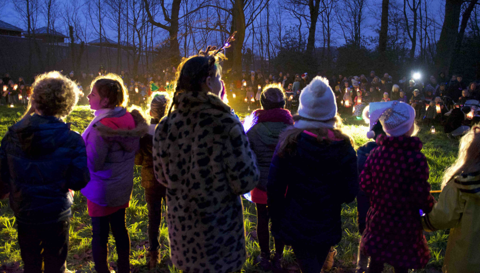 Het begint in de oude Jeroenskerk, met een zang- en dansvoorstelling voor en door kinderen. Na de voorstelling wandelen alle kinderen met een lampion door de historische Voorstraat naar het Landgoed Calorama.